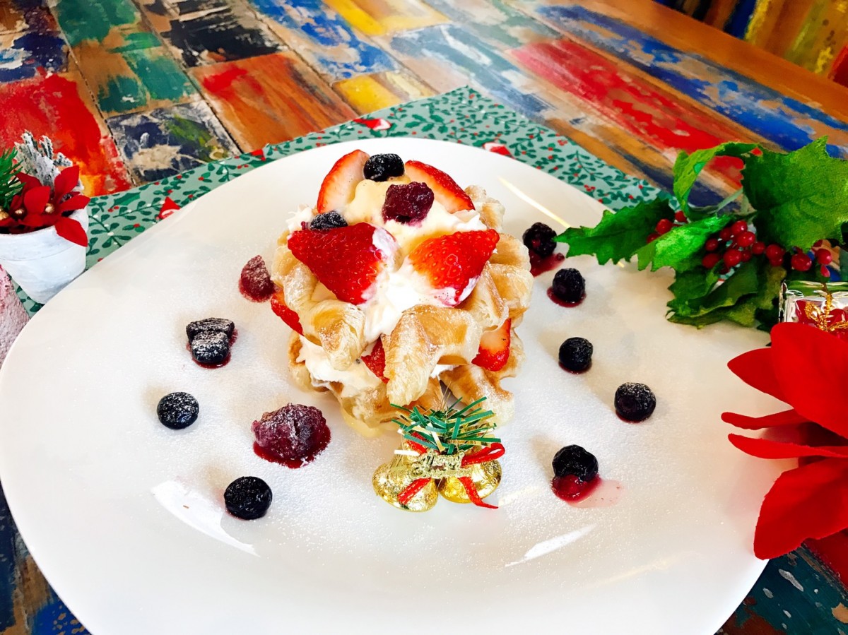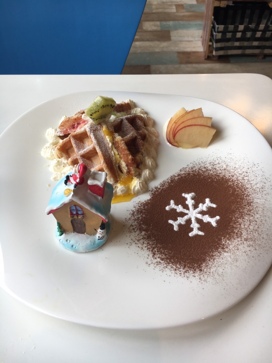 当店自慢!!大人気、クロワッサンワッフルを使ってお客様にお好みのデコレーションをしていただきます(^ω^)