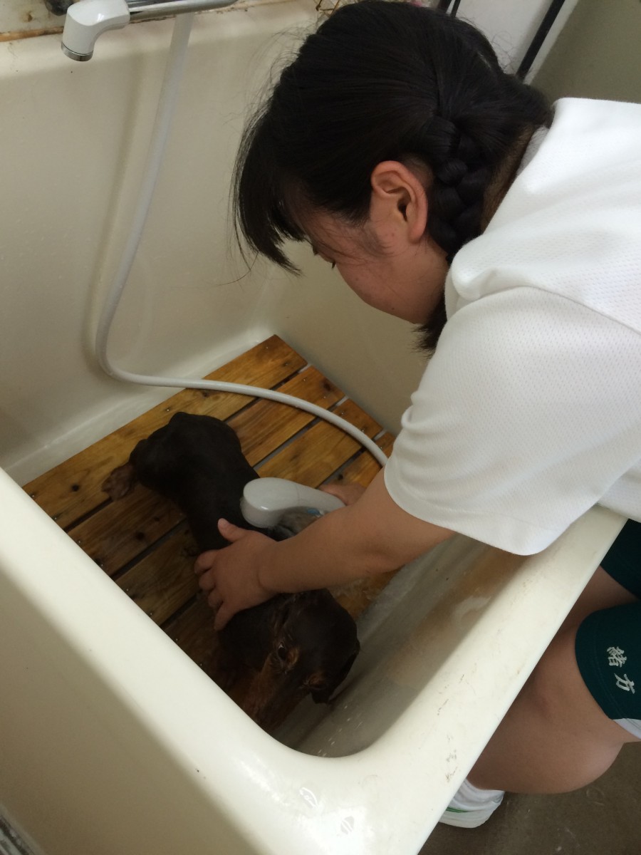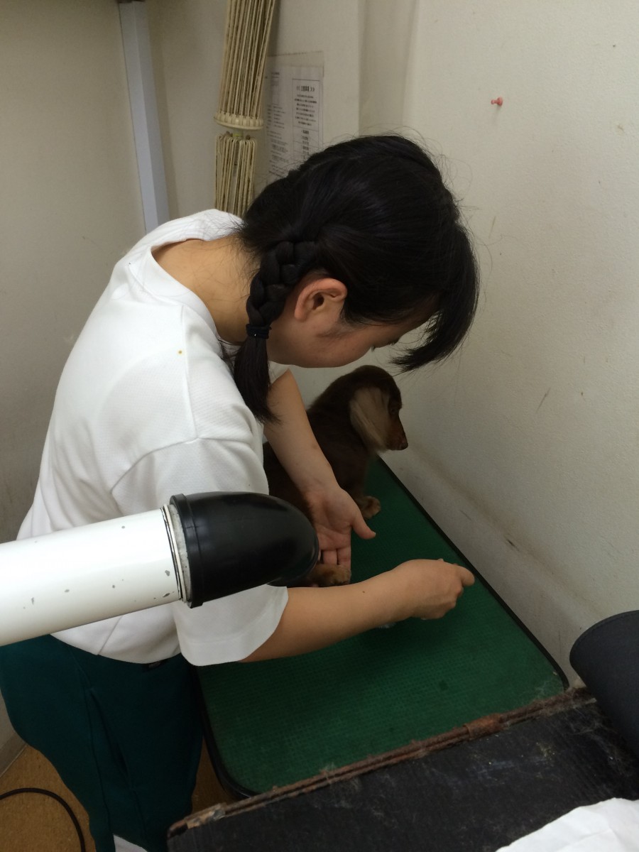 最終日はトリマーに指導を受けながら鳥栖店の看板犬をシャンプーしてもらいました!
