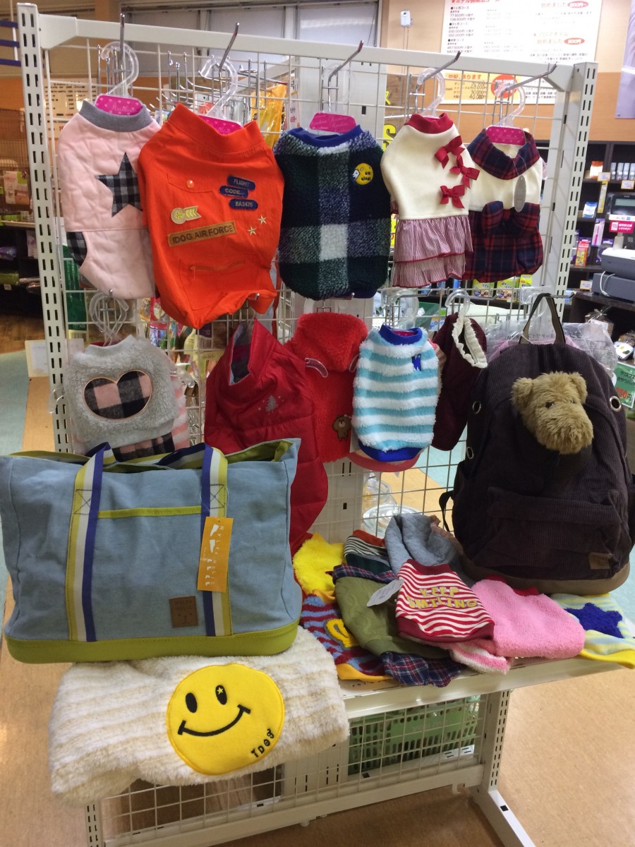ワンちゃんにお洋服などを着せて
