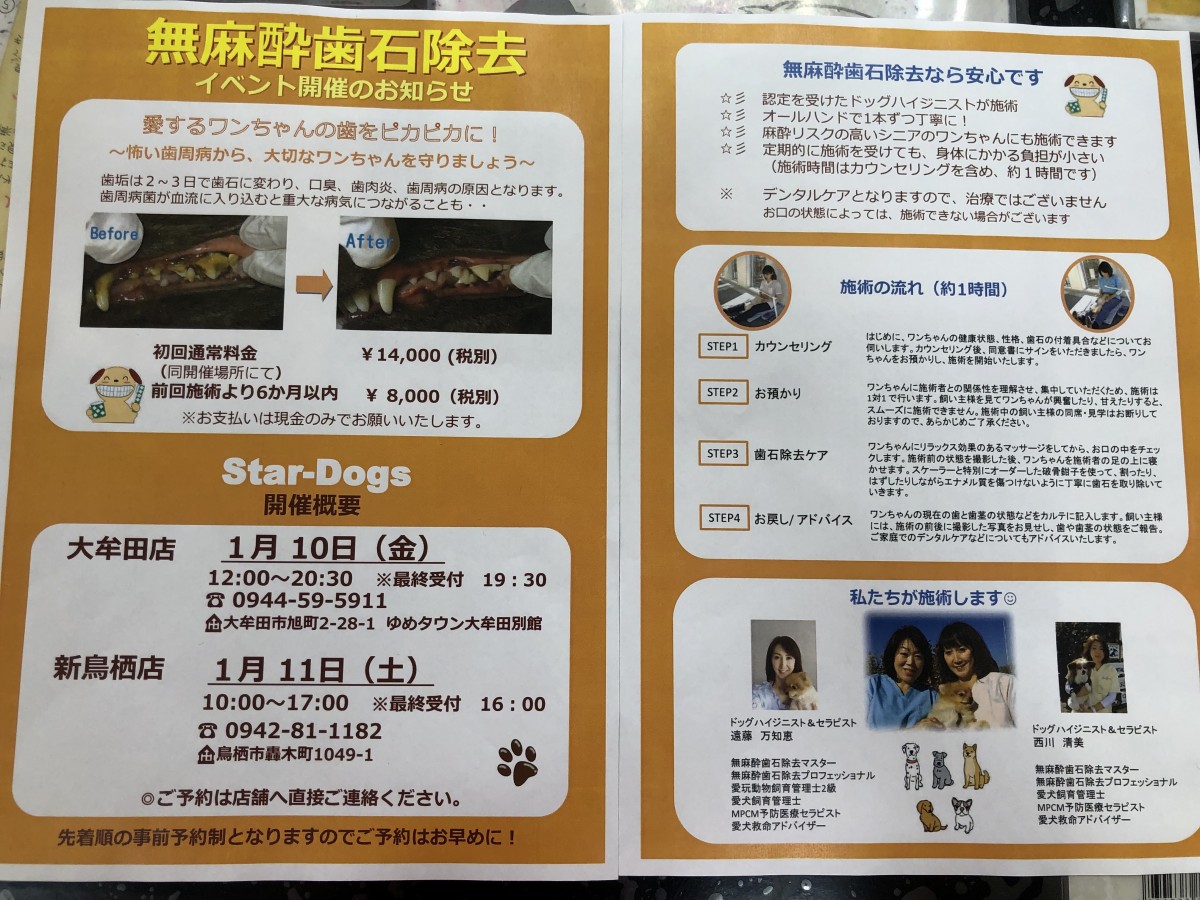 前回ご好評いただきました、無麻酔歯石除去イベントの次回開催日が決定いたしました!