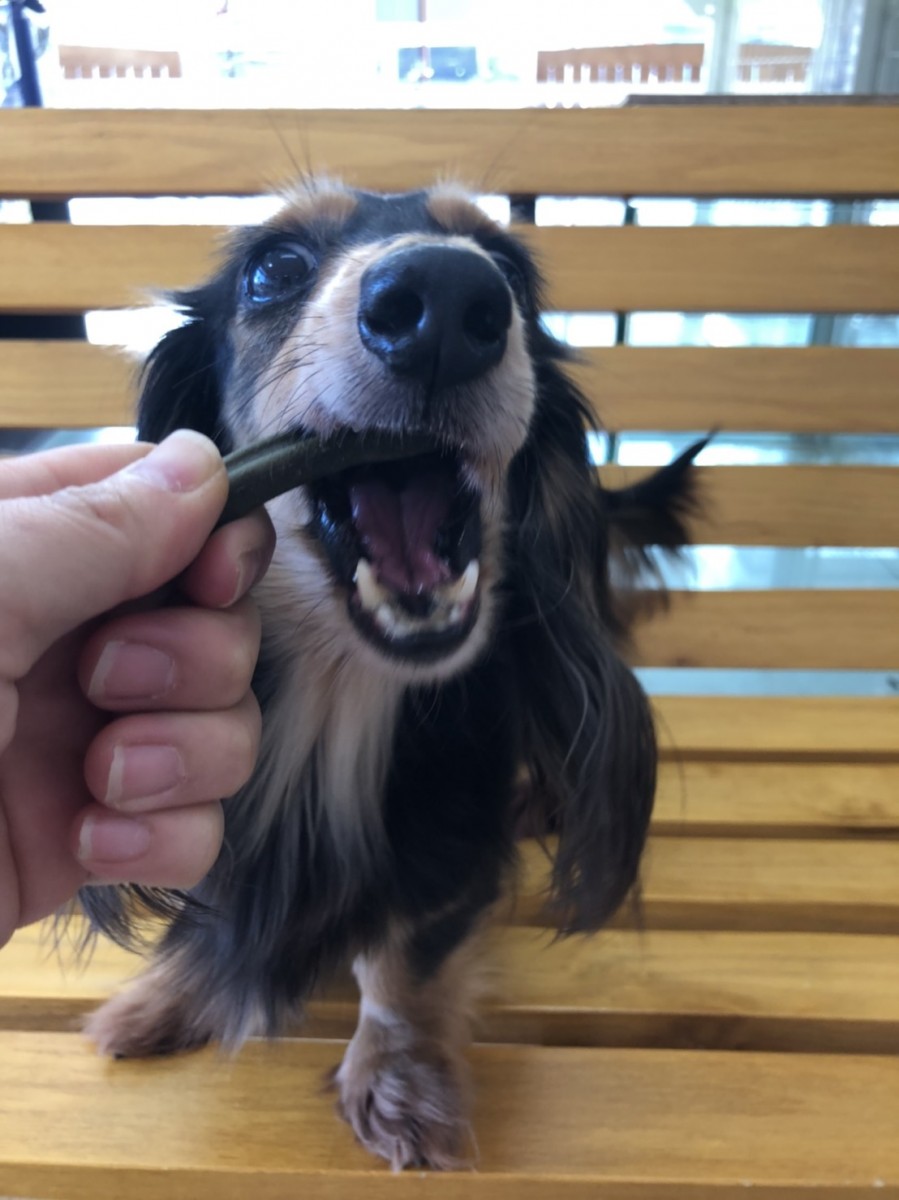 与え方のポイントは飼い主さんが手に持ち、いろんな歯にあたるように噛ませてあげることです!!