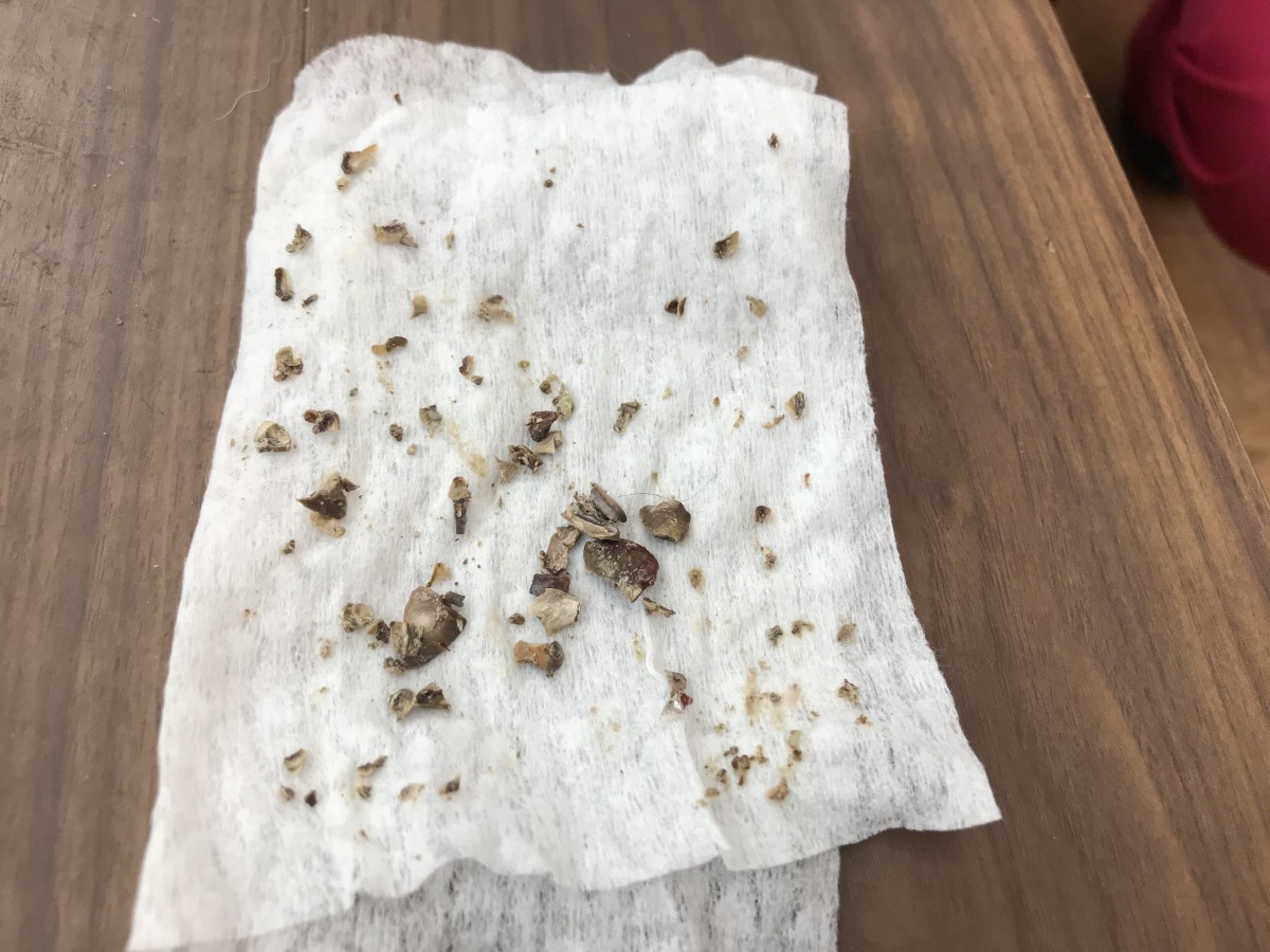 これはティッチちゃん(トイプードル)の表側からのみ取れた歯石です。
