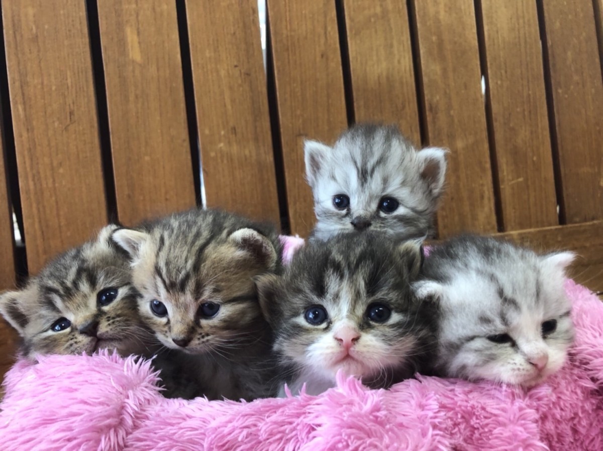 男の子が1匹 女の子が4匹生まれていて、お母さん(看板猫のアニーちゃん ペルシャ)のおっぱいを