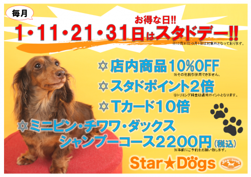 毎月1のつく日はお買い物がお得な日スタドデー!