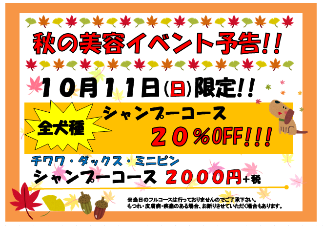 鳥栖店‼10月11日限定!!シャンプー20%OFF‼