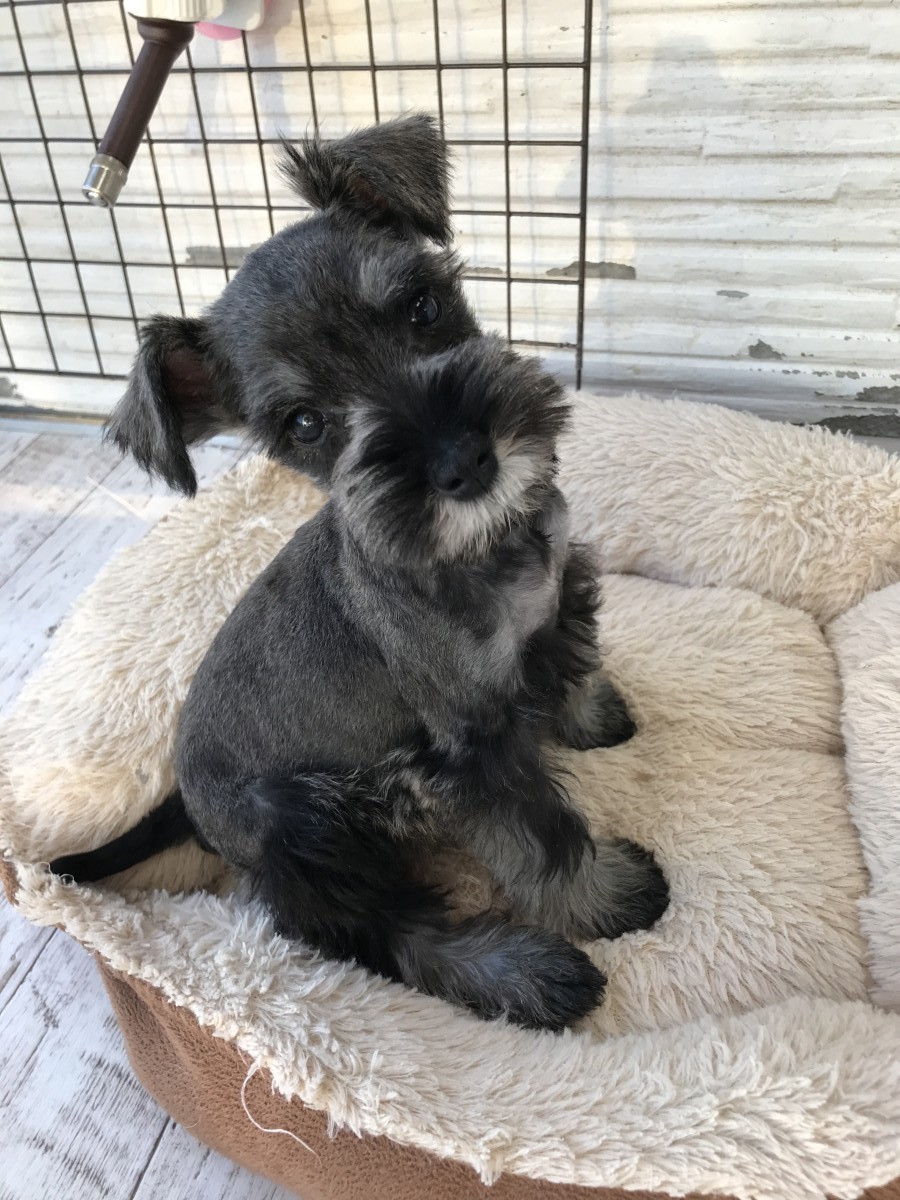 先日シュナウザー♂が入舎いたしましたが、カット致して可愛くなったのでお披露目(∩´∀`)∩