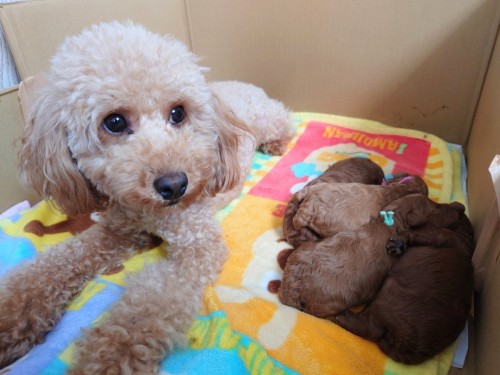 先日出産しました看板犬、ぷーちゃんの子育て日記♡