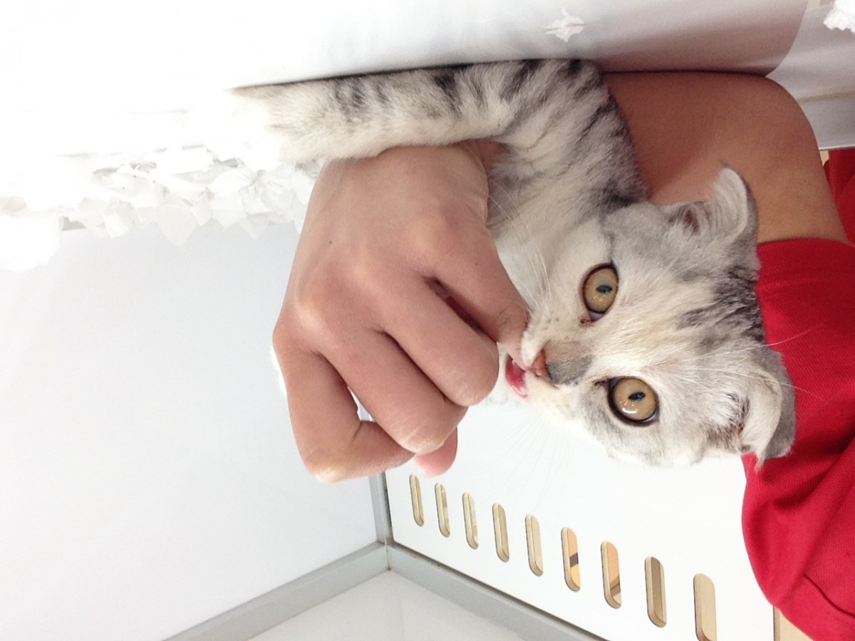 ずーっとゴロゴロと喉を鳴らして指をぺろぺろ、、、そしてパクッ