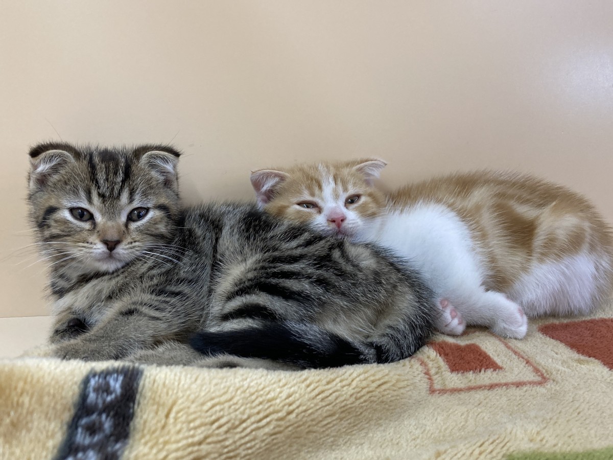 左 スコティッシュフォールドの女の子 ブラウンタビー