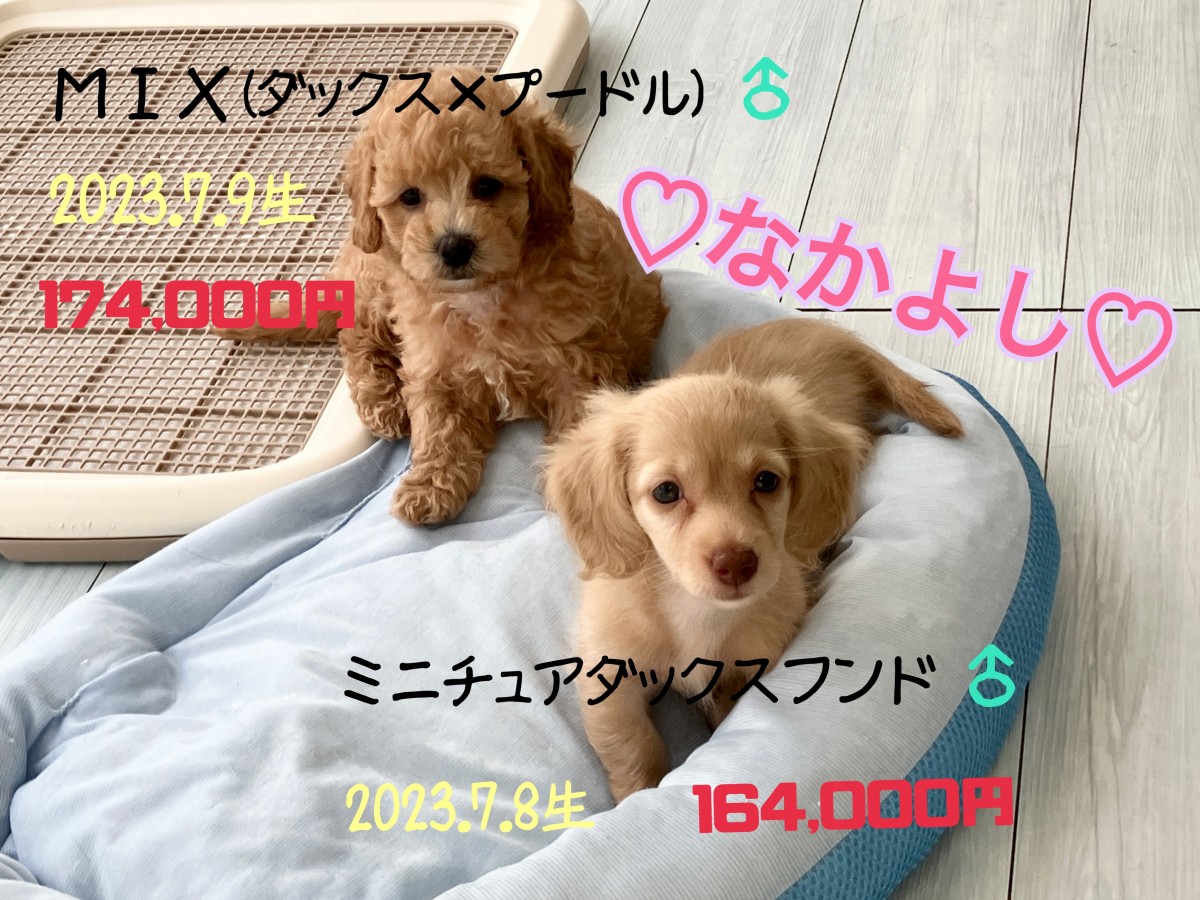 先日仲間入りしたダップーちゃん&ダックスちゃんの仲良しショットです♪