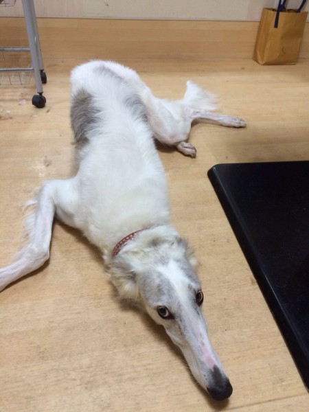 ルーちゃんは疲れてしまったご様子ですが飼い主のスタッフは