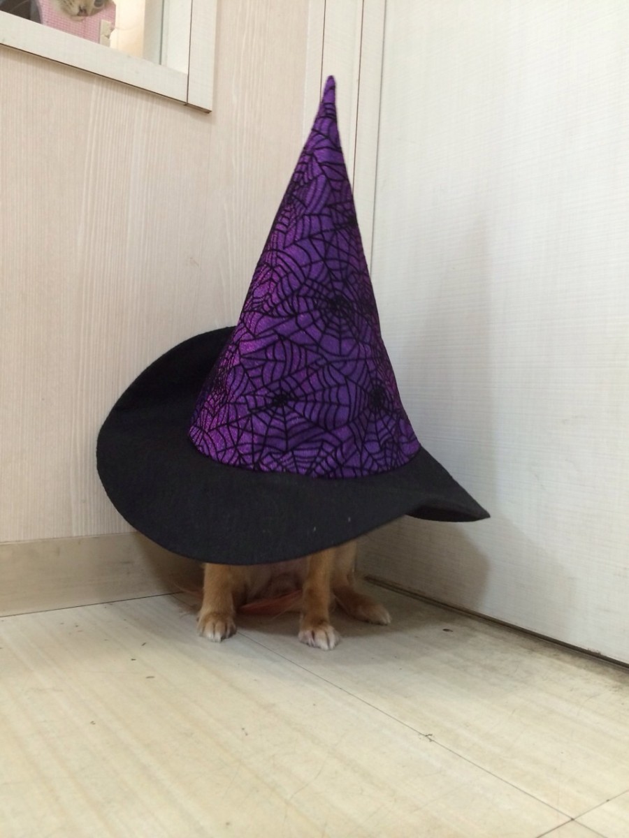 スタッフの愛犬シャンティーも仮装させられ不機嫌モードです(´◉◞౪◟◉)