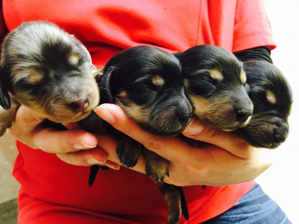 ブラックタン3頭とダップルの男の子が1頭です(*’▽’)