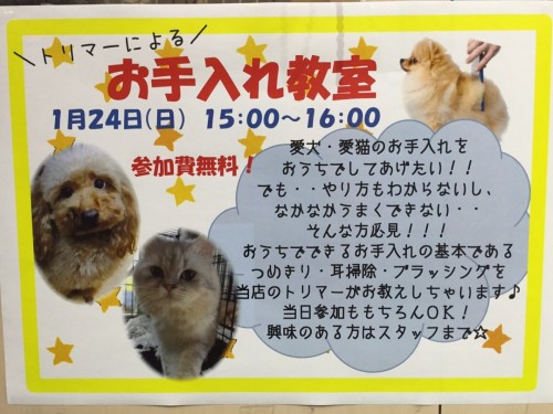 鳥栖店にてトリマーによる、お手入れ教室行います!!!!