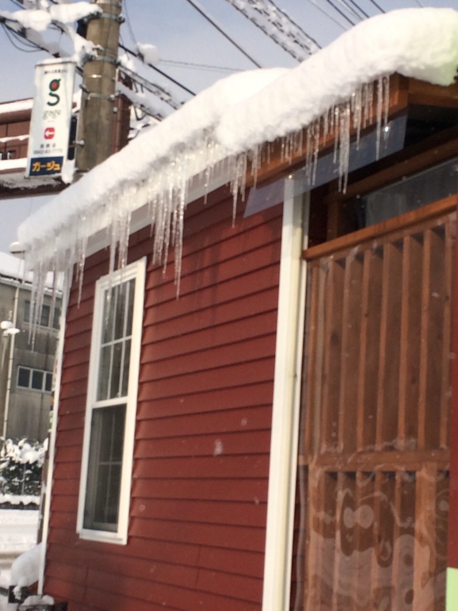 結カフェの屋根にはこんなに立派なつららまで(*_*)