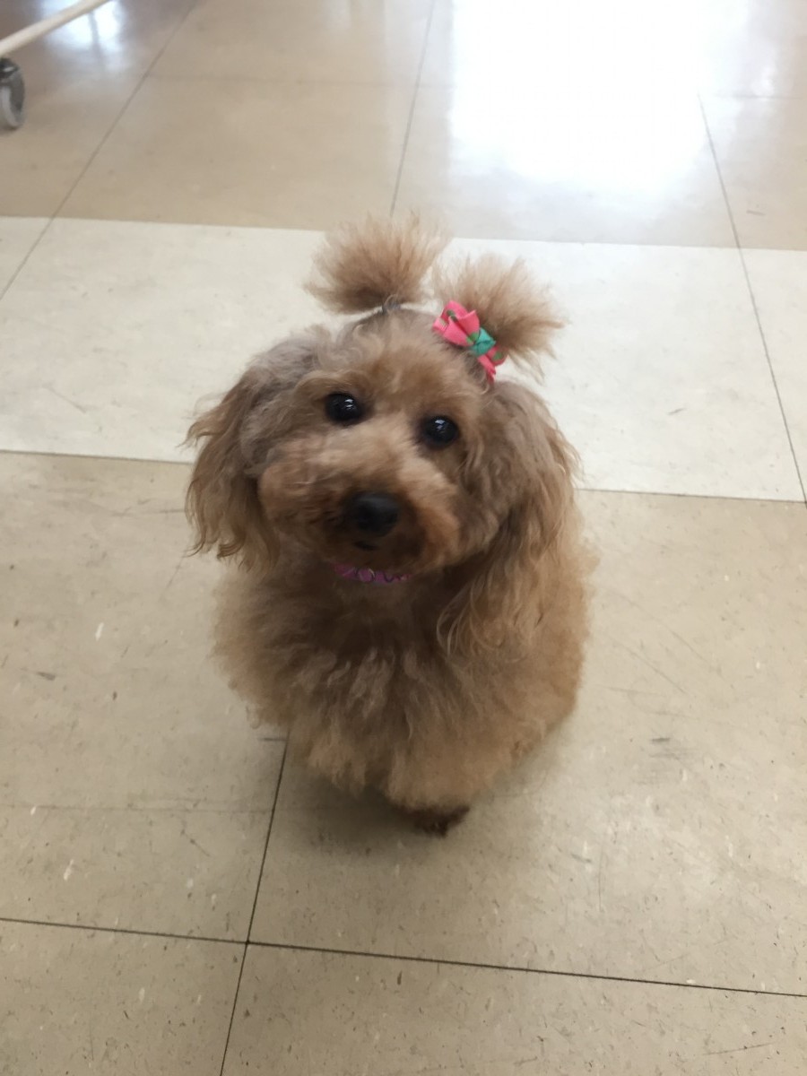 おめめパッチリ看板犬のじゃがりこちゃん(カニ風味)です