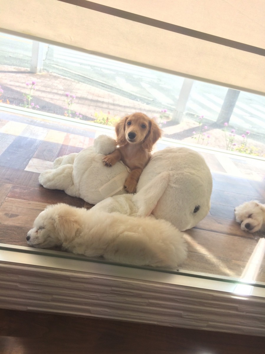 仲間入りしたわんちゃん、猫ちゃんもやっとお店に慣れてきたようです