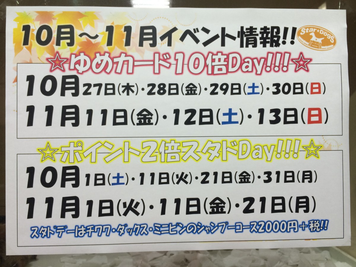 10月11月イベント情報!