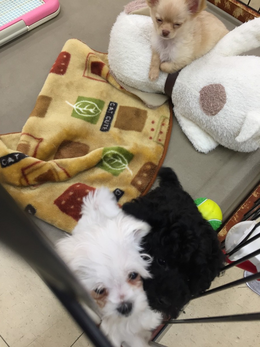 大牟田店では今いろんな種類の小さいわんちゃんを一緒に遊ばせています!