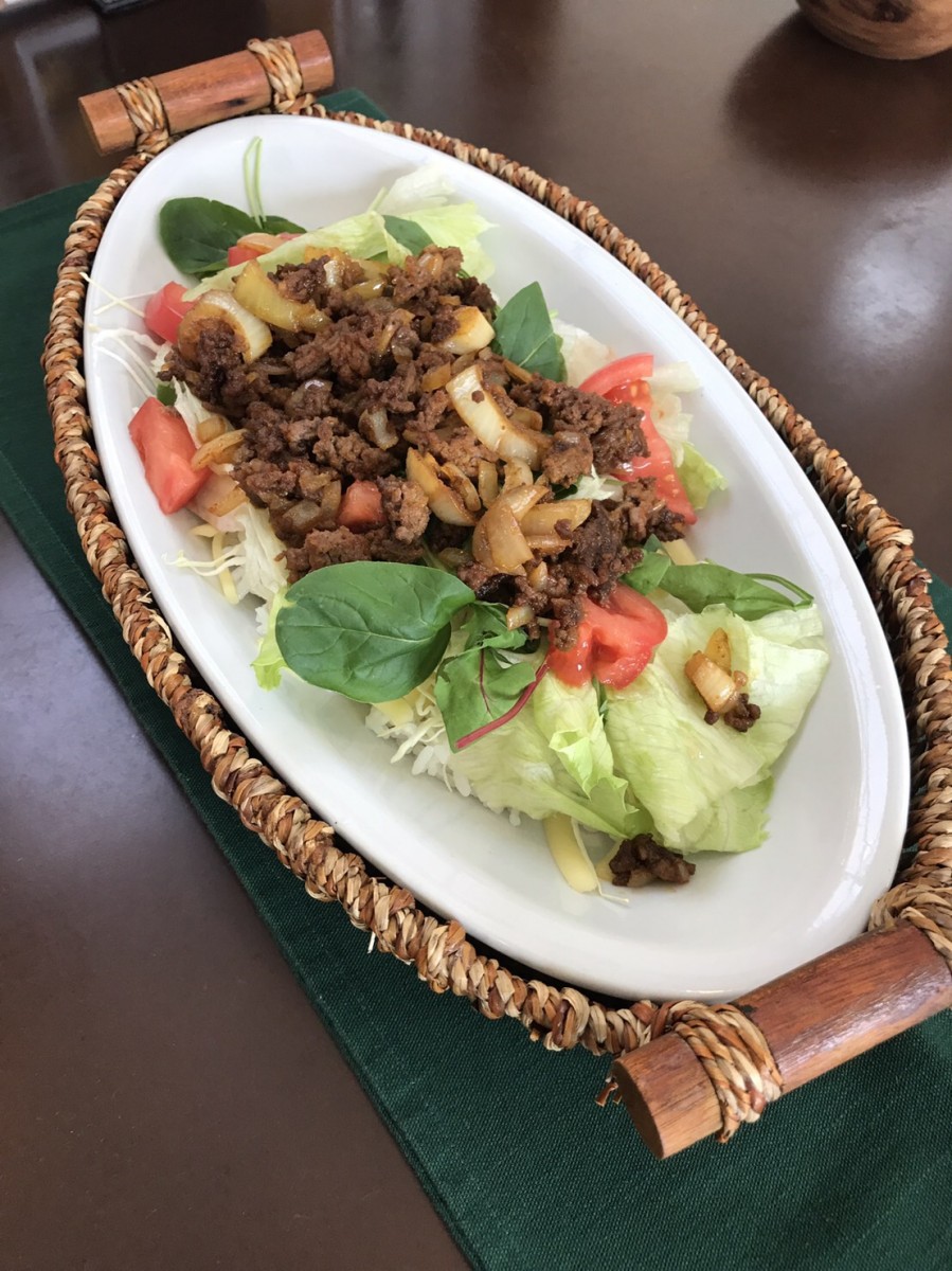 上の写真は新発売したばかりのタコライスとビーフシチューです(^^♪