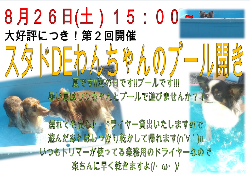 前回大好評でしたワンちゃんのプール開きがまた開催決定いたしました(∩´∀`)∩