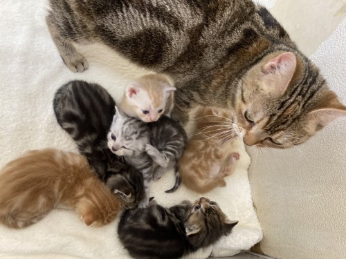 こんにちはヾ(≧▽≦)ノ大牟田店です 2022.2.27に生まれたアメリカンショートヘアの赤ちゃん達 すくすく成長しています♡ 遊びに来られた際はぜひ見てみて下さいヾ(≧▽≦)ノ